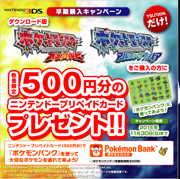 Tsutaya Game Dlカード版 ポケモン オメガルビー アルファサファイア 購入でオリジナルプリペイドカード500円プレゼント ゝ プッ 詳細はこちら Http T Co Xu72xdbapk 11 30までの期間限定 Http T Co Feg5f1uant Twitter